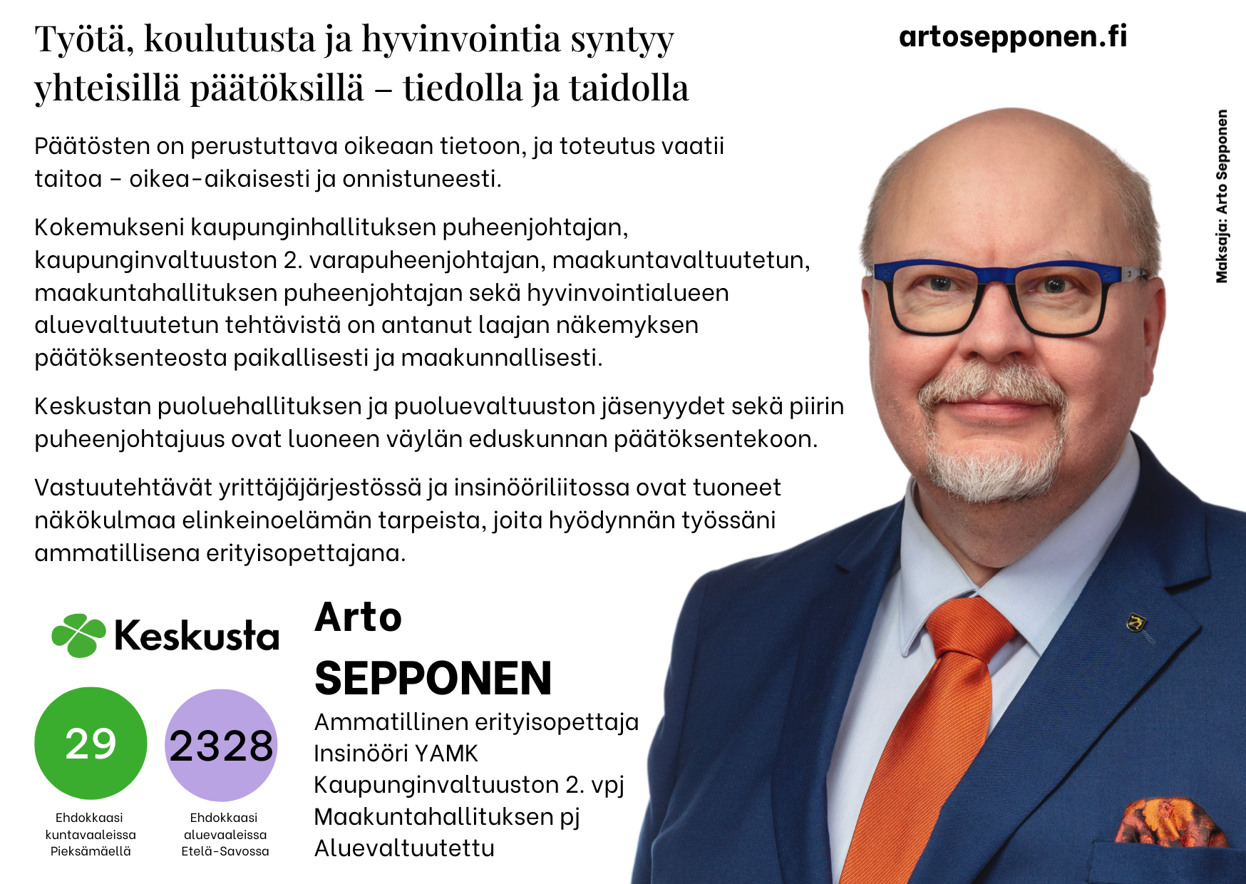 Arto Sepponen, arto @ artosepponen.fi, 044 3370 230